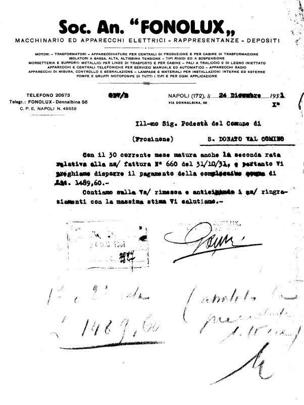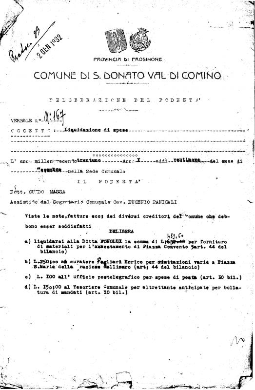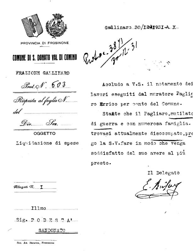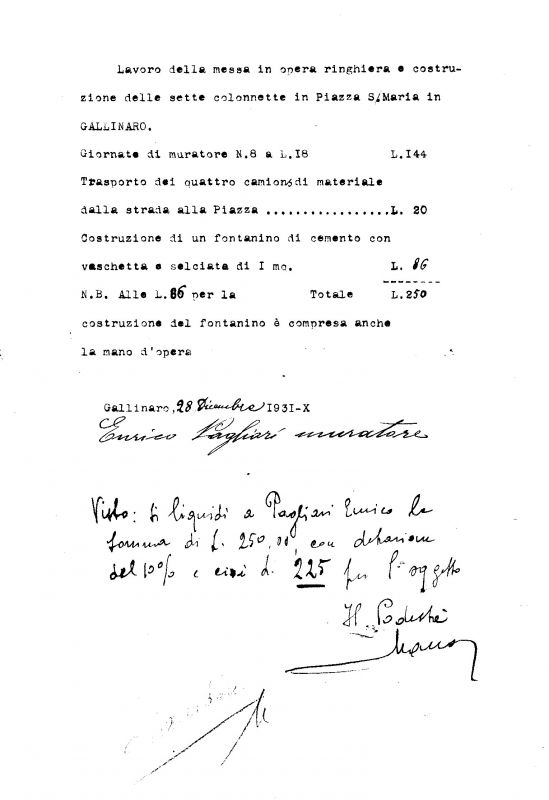 Fatture relative alla fornitura di materiali per l'assestamento di piazza Convento; interventi vari in piazza Santa Maria nella frazione di Gallinaro
